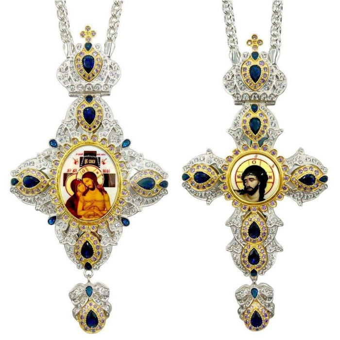 Archbishop's brass set in silver with fragmentary gilding and chains