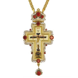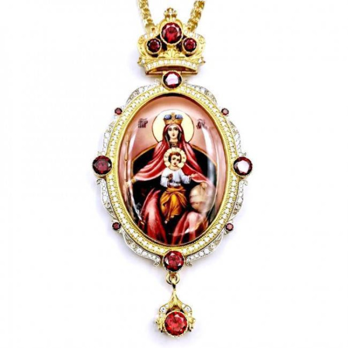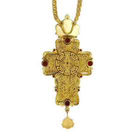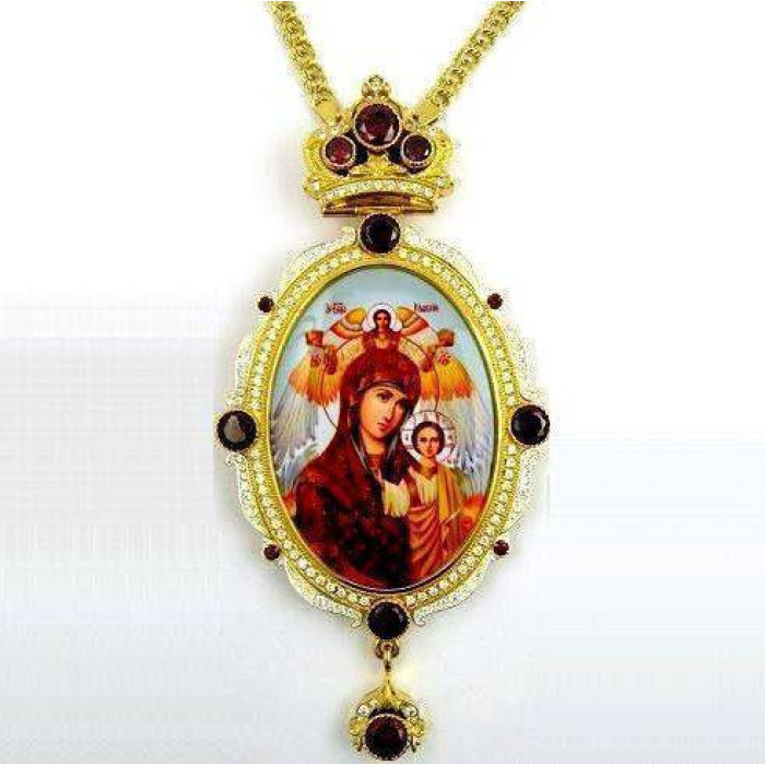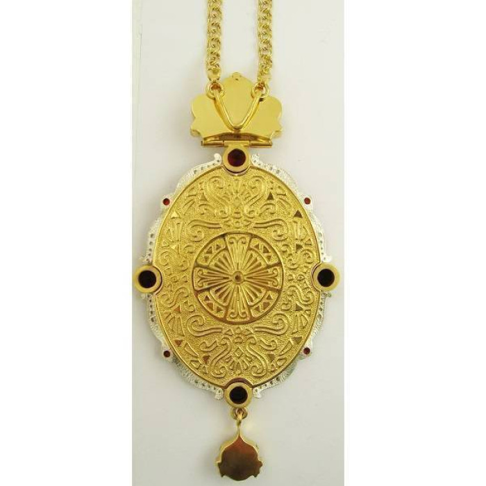 Archiepiscopal Engolpion made of brass in gilt with chain (BG1288LPF-2+1LP) - manufactured by Agat Jewellery according to all the canons of the Orthodox Church.