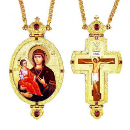 Archiepiscopal Engolpion made of brass in gilt with jewelry and chain (BG1843LP-2+1LP) - manufactured by Agat Jewellery according to all the canons of the Orthodox Church.