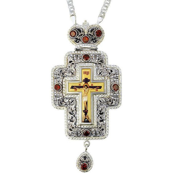 Brass cross in silver plated with chain - manufactured by Agat Jewellery according to all the canons of the Orthodox Church.