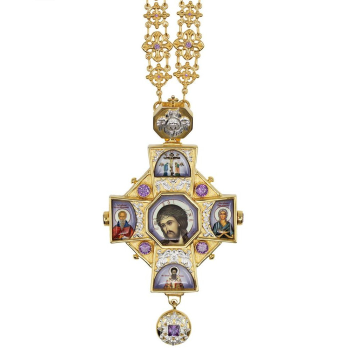Cross for a priest made of silver-plated brass with gilding and a chain (BJ0411LPF-2+48LP) - manufactured by Agat Jewellery according to all the canons of the Orthodox Church.