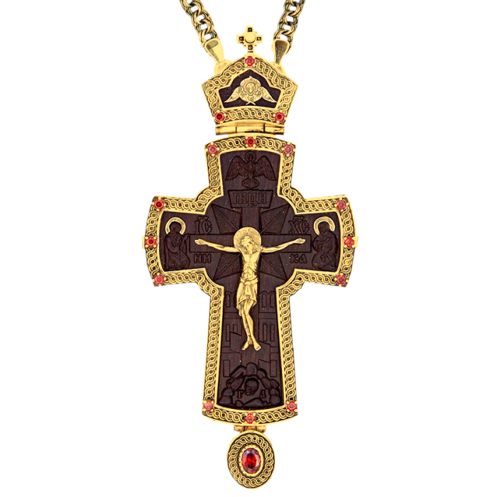 Cross for priest in gilded brass with ebony image and chain. (BJ0421LP-13+1LP) - manufactured by Agat Jewellery according to all the canons of the Orthodox Church.