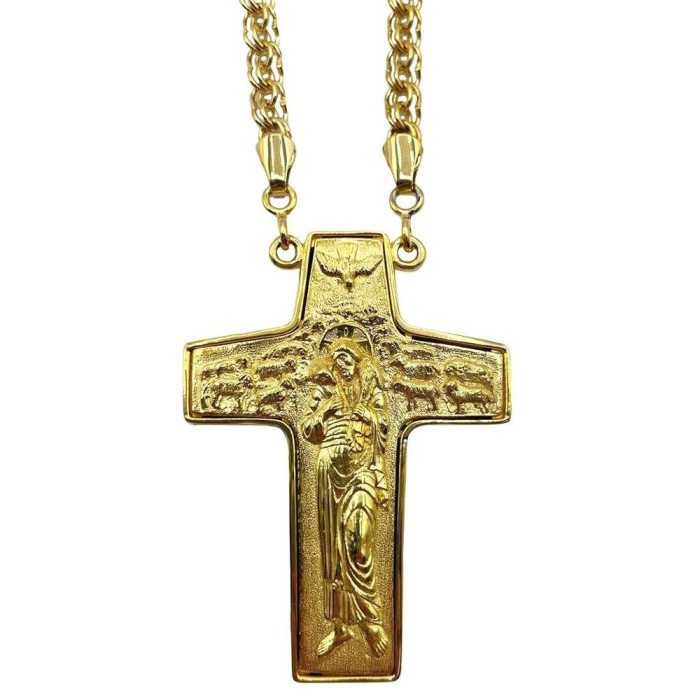 Cross for priest made of brass in gold plated with chain