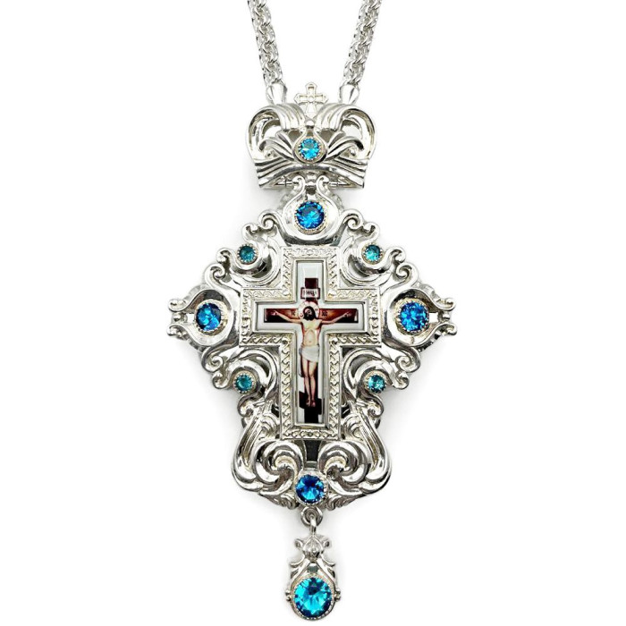 Cross for priest made of brass in silver plating with chain (BJ0514L-2+1L) - manufactured by Agat Jewellery according to all the canons of the Orthodox Church.