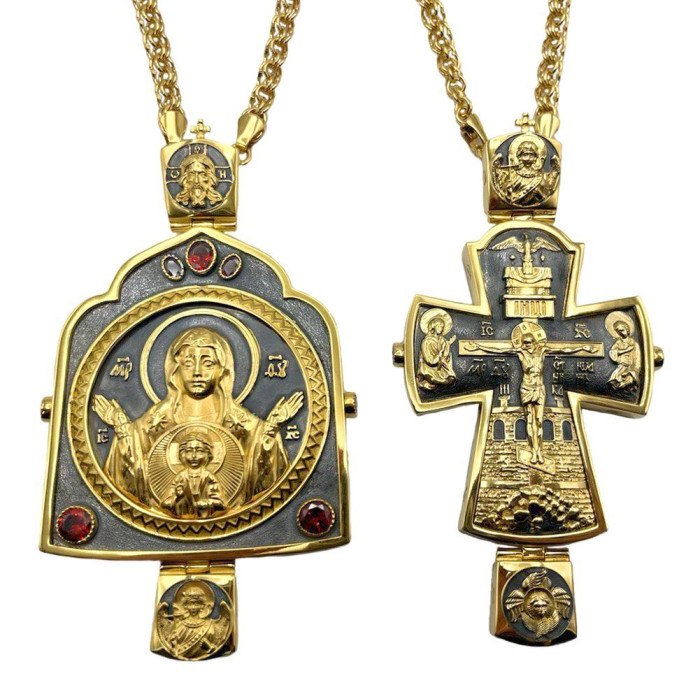 Arcibiskupská souprava z mosazi zlacené a stříbrné s niellem a řetízky