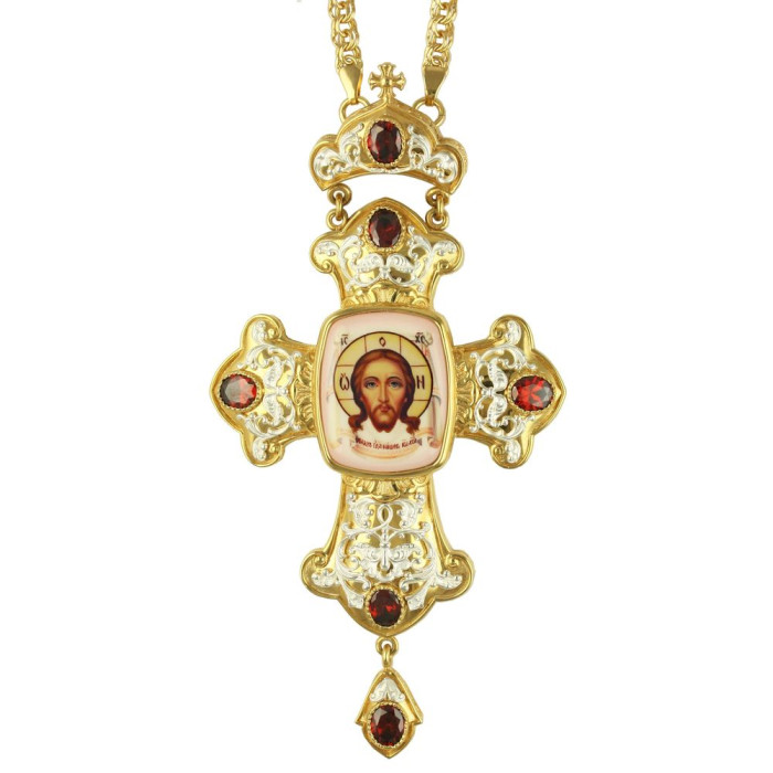 Kříž pro kněze mosaz ve zlacení s řetízkem - vyrobeno společností Agat Jewellery v souladu se všemi kánony pravoslavné církve.