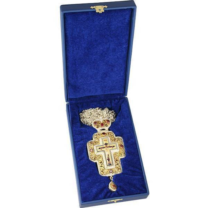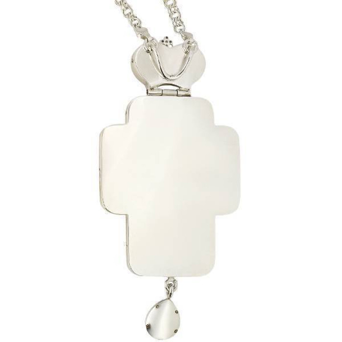 Mosazný stříbrný kříž s fragmentárním zlacením a řetězem - vyrobeno společností Agat Jewellery v souladu se všemi kánony pravoslavné církve.