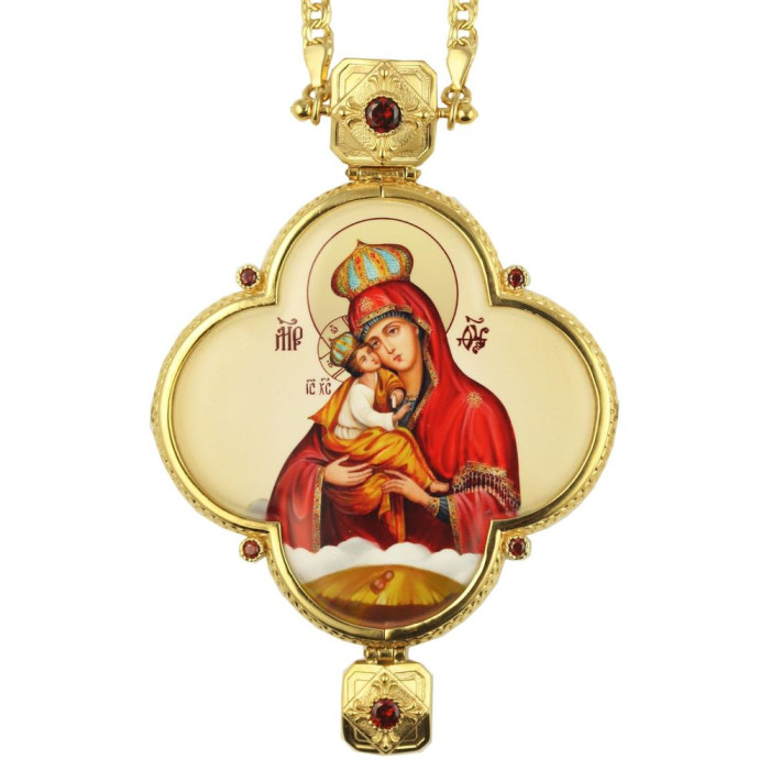 Panagia archijerejska ze zlacené mosazi s kubickými zirkony a řetízkem (BG1505LP-2+1LP) - vyrobeno společností Agat Jewellery v souladu se všemi kánony pravoslavné církve.