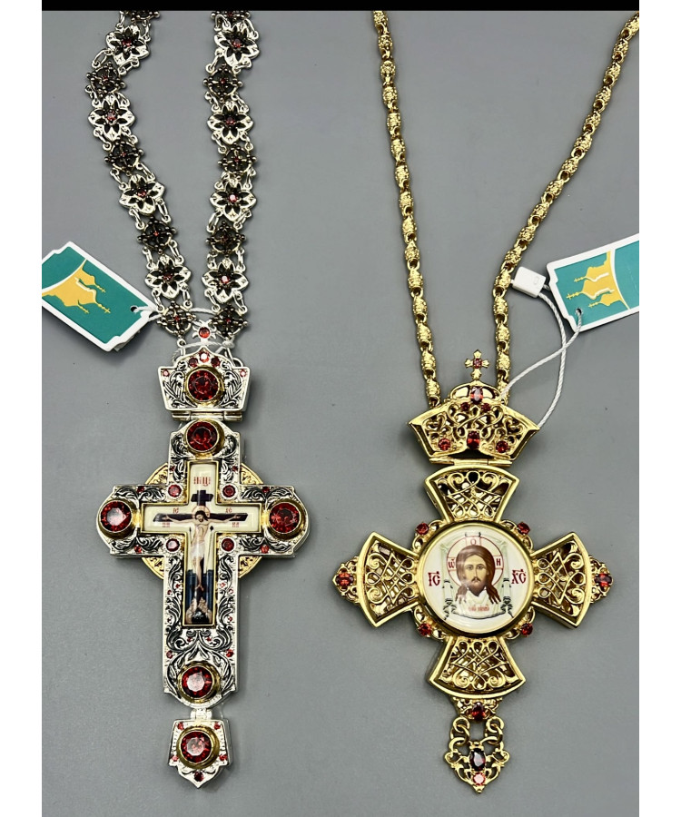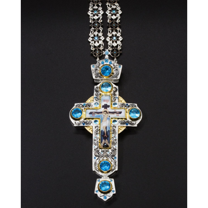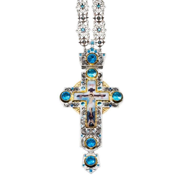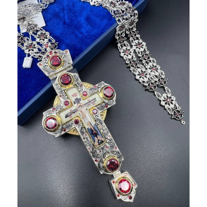Postříbřený mosazný pektorální kříž s řetízkem a zlacením (BJ0268LFR-2+48LR) - vyrobeno společností Agat Jewellery v souladu se všemi kánony pravoslavné církve.