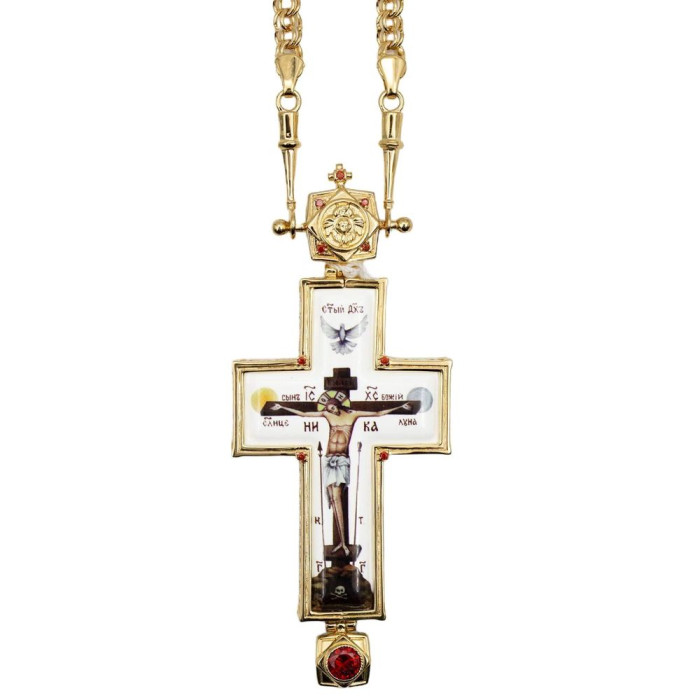 Prsní kříž pro kněze mosazný zlacený s řetízkem - vyrobeno společností Agat Jewellery v souladu se všemi kánony pravoslavné církve.
