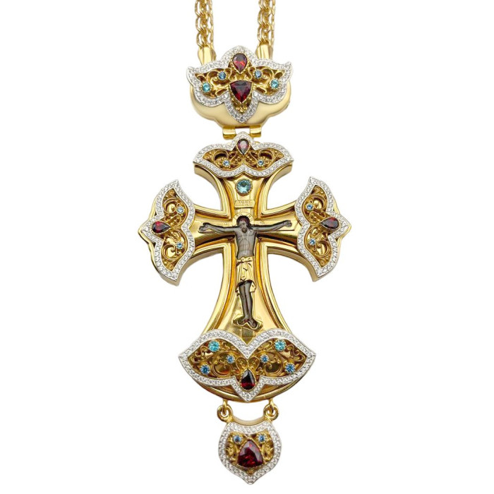 Priest's cross in brass in gold plated with silver plating and chain (BJ0436LPF-2+1LP) - manufactured by Agat Jewellery according to all the canons of the Orthodox Church.