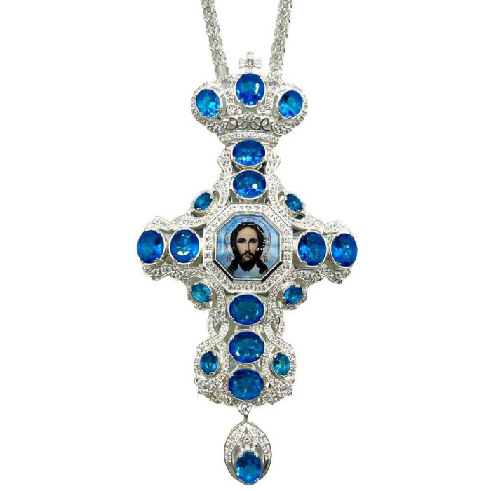 Priest's cross in brass in silver plating and chain (BJ0419L-2+1L) - manufactured by Agat Jewellery according to all the canons of the Orthodox Church.