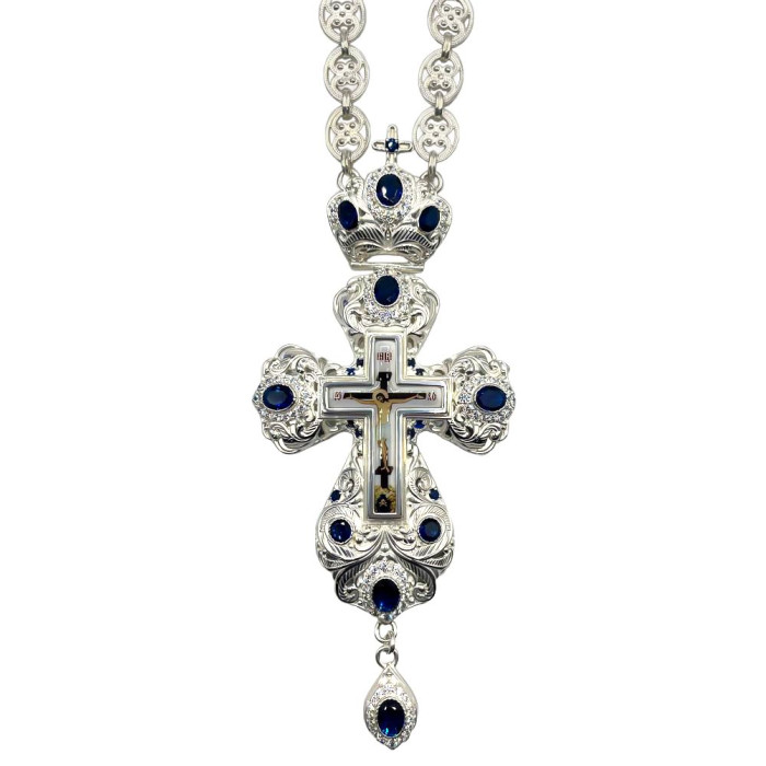 Priest's cross made of brass with silver plating and a chain (BJ0156L-2+98L) - manufactured by Agat Jewellery according to all the canons of the Orthodox Church.
