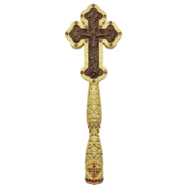 Altar cross brass pectoral on wood in gilt
